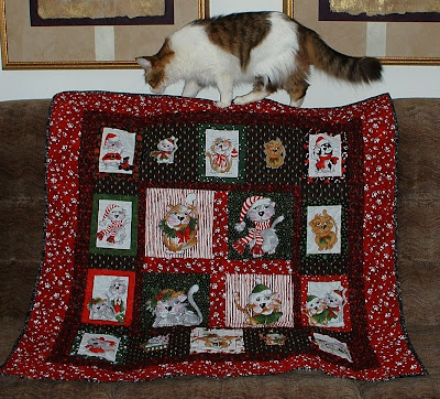There was a raffle over at our friend's The Ozark-Mountain-Cats blog and we won this beautiful Chrissymouse quilt! It is more beautiful in person if you can imagine! Mom is so excited as it's the very first quilt she's ever owned. Since we don't put up a tree anymore because of my sister, Laila's, crippling fear of them, this gorgeous quilt will more than make up for it!