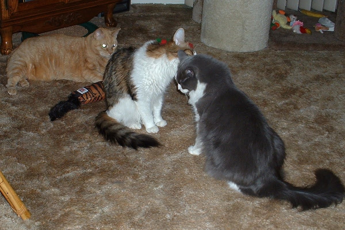 Momma's heart is broken. Our cousin Gizmo ran off to the Bridge yesterday morning. He had chronic renal failure and was failing fast. Of course she drove our auntie and him to the vet and watched him pass peacefully. We feel so bad for Mom because she was the one who found him when he was four weeks old in the field with his two brothers behind her office.